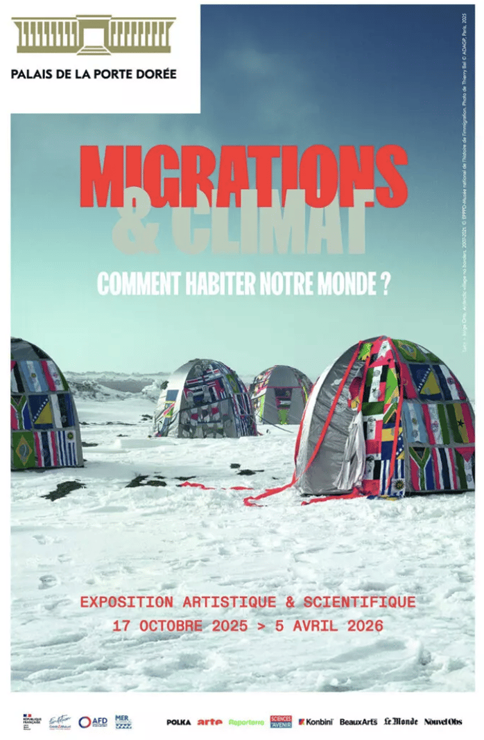 Affiche de lâexposition Migrations et climat au Palais de la Porte DorĂ©e