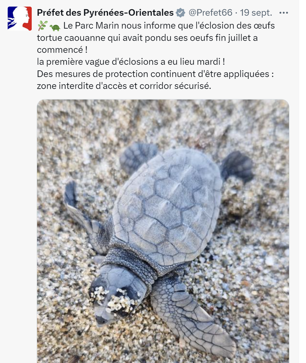 Je croise les doigts pour que le maximum de ces tortillons continuent leur chemin de vie. C’est quand même une chance que cette espèce si fragile choisisse de manière de plus en plus régulière le littoral méditerranéen français pour se reproduire. C’est très rare et la protection mise en place assez vite a porté ses fruits. Hâte d’avoir des nouvelles des autres lieux concernés.
