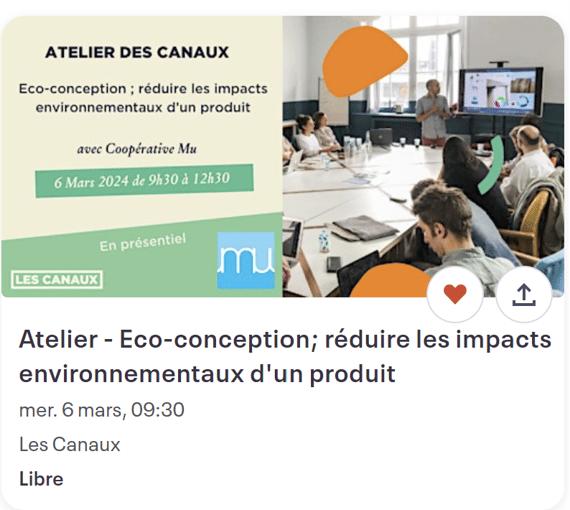Si tu portes un projet dâentreprise Ă impact (ou que tu es fortement titillĂ©.e par lâidĂ©e), je te conseille cette sĂ©rie dâateliers pour tâaider Ă monter ton projet. Perso, je me suis inscrite Ă celui du 6 mars Ă 9h30 pour en savoir (concrĂštement) plus sur lâĂ©co-conception. Tu mây retrouves ?