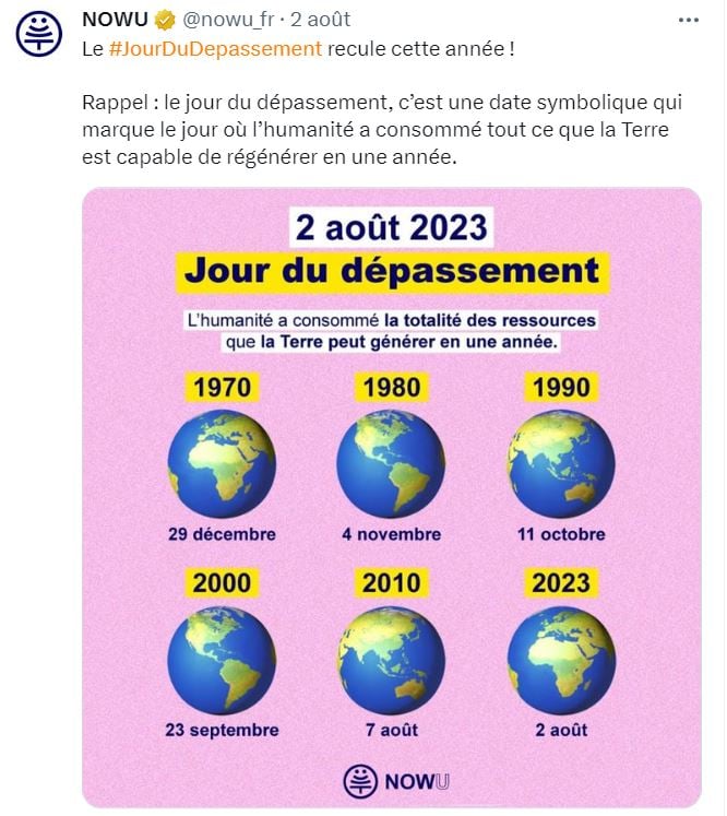 Bon ok, pas encore de quoi sauter au plafond… mais c’est déjà la deuxième fois depuis 2010 que la date du Jour du Dépassement recule. La première fois c’était en 2020, l’année Covid.